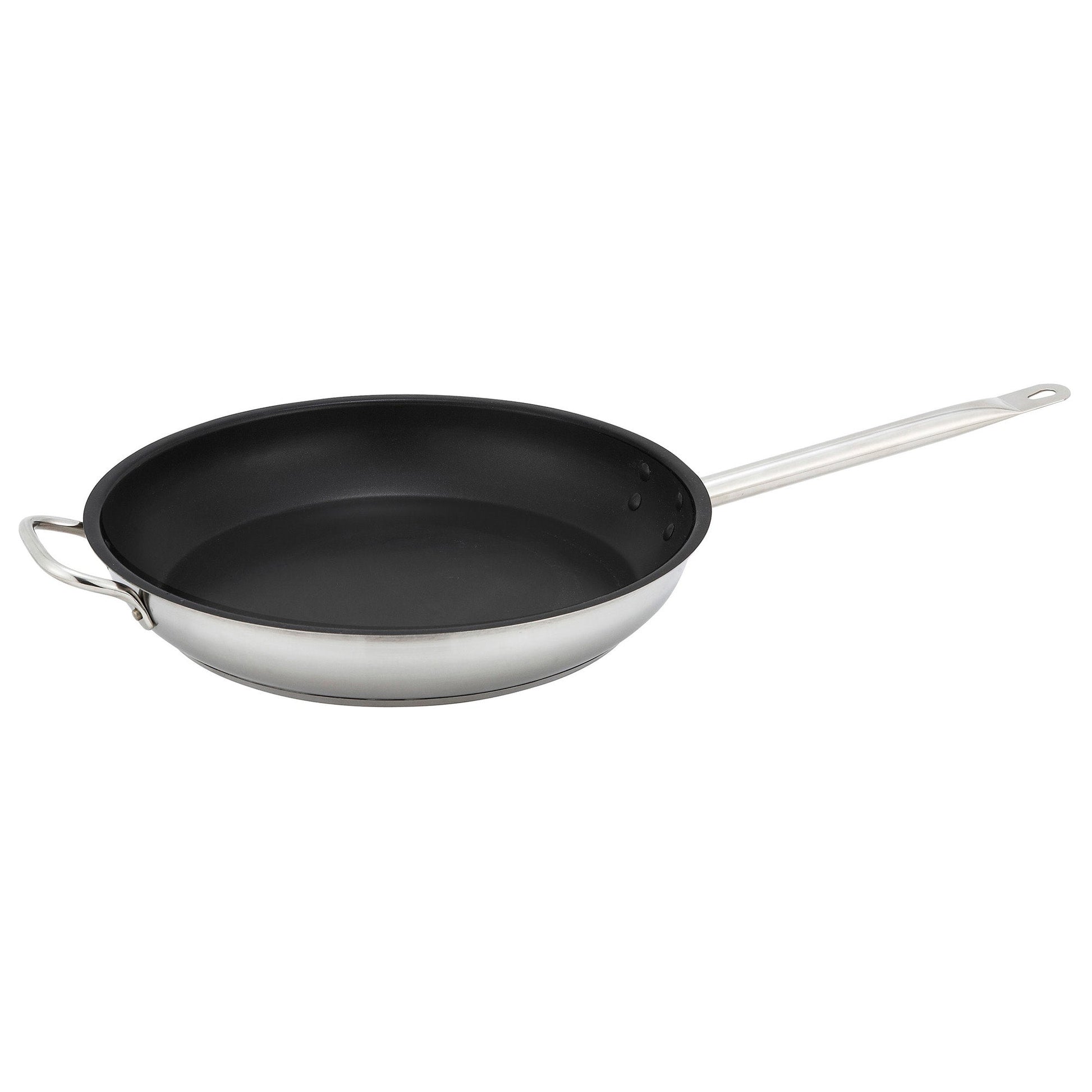 FRY PAN-14 1/4"X2 1/2", ROUND, TRI PLY HEAVY DUTY BOTTOM W/ ALUMNUM CORE, 18/8 STAINLESS STEEL, NON STICK COATING, W/ HELPER HANDLE